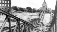 Gegen 3 Uhr nachts wird die Weserbrücke gesprengt, erste US-Panzer hatten zuvor das Weser-Ufer erreicht.