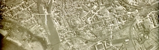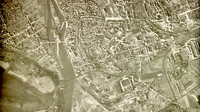 In der Luftaufnahme sind die Einschläge am und um den Bahnhof gut zu sehen (rechter Bildschirmrand).